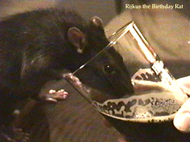It didn't take the two young rats very long to settle in and learn all the tasks involved with being a mascot. Within a few months, they had things well under control. Now they could concentrate on gaining weight and attaining the perfect rat shape. In his prime, Rijkus reached a maximum weight of 610 grams, while Devert never passed the 500 gram mark. Another very important task was the sampling of a large variety of beer. Devret tended to be far more discriminating than his larger brother, which very likely played a major role in the weight difference.